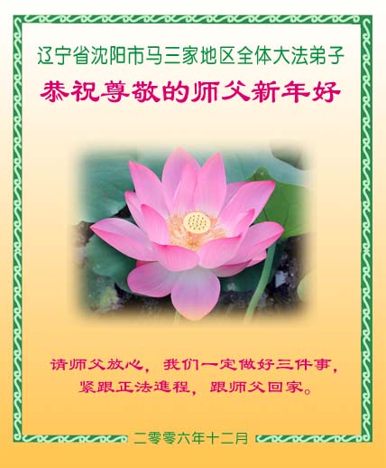 All Falun Dafa Practitioners from Masanjia Area, Shenyang City, Liaoning Province Respectfully Wish Esteemed Master a Happy New Year!