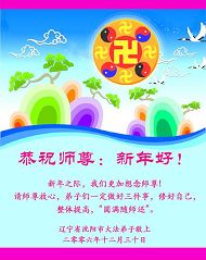 Revered Master, please rest assured. We will do well the three things, completely negate the old forces, thoroughly dissolve all rotten demons that undermine the Fa and walk well the path to godhood. In the coming year, we wish great and revered Master a Happy New Year!