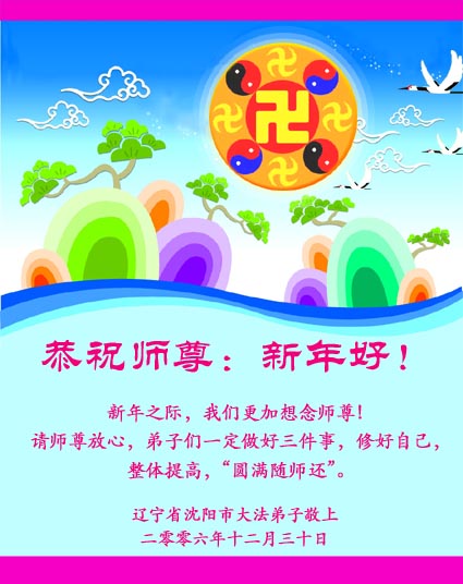 Falun Dafa Practitioners from Shenyang City, Liaoning Province Respectfully Wish Revered Master a Happy New Year!