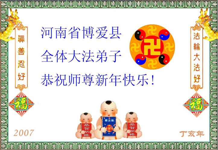 The year 2007 is around the corner, all practitioners in Nanning City, Guangxi AR thank Master’s compassionate and arduous salvation. We respectfully wish compassionate great Master a Happy New Year!